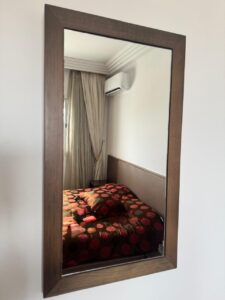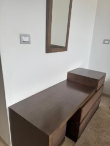 - une coiffeuse avec 2 miroirs et une pouffe.[/caption]